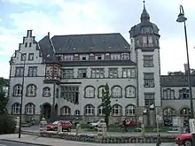 It was built with funds from the Carl Zeiss Foundation by Arwed Roßbach and opened in 1903. Supported by the physicists Ernst Abbe and Siegfried Czapski who worked at Zeiss, as well as the publisher Eugen Diederichs, the drawing school of the painter Erich Kuithan existed here from 1903 to 1908. In 1907, the Jena Volksverein showed a selection from the 1st Graphic Exhibition of the Deutscher Künstlerbund in Leipzig in the Volkshaus.[1]