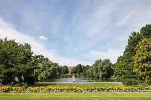 The Volkspark Mariendorf is a park located in the Mariendorf part of Berlin's borough Tempelhof-Schöneberg, and was built in 1924. It covers approximately 13 hectares. The landscape architect was Ernst A. Harrich.
