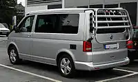 By 2005, people could place an order for delivery of the Westfalia California, now based on the T5 Transporter. At the 2007 Caravan Salon in Düsseldorf, VWCV launched the new Westfalia California Beach with pop top bed, as seen in the higher specified versions of the California range.[1] In 2013, under the launch of the T5.1 (T5 facelift) Volkswagen shortened the name of the vehicle to the "Volkswagen California". They also introduced two new versions of their new van, "California Tramper" and "California Beach".