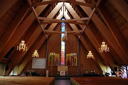 Volsdalen Church (Norwegian: Volsdalen kyrkje) is a parish church of the Church of Norway in Ålesund Municipality in Møre og Romsdal county, Norway. It is located on the south side of the island of Nørvøya in the town of Ålesund. It is one of the three churches for Ålesund and Volsdalen parish which is part of the Nordre Sunnmøre prosti (deanery) in the Diocese of Møre. The red, wooden church was built in a rectangular design in 1974 using plans drawn up by the architect Leif Olav Moen. The church seats about 500 people.[1][2]