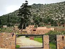 The Vosakou Monastery (Greek: Μονή Βωσάκου also misspelled as Βοσάκου) is a 17th-century monastery situated in the Mylopotamos region of the Rethymno regional unit in north-central Crete. The monastery is roughly 50 km east of Rethymno and is built on the north slope of a plateau in the Tallaia mountains.[1] Its name stands for the ox-fold, composed from the Greek words βούς (ox) and σηκός (fold) (σακός in the Doric Greek dialect).