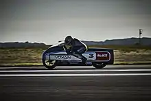 Ridden by Max Biaggi, the Wattman set a new world speed record for an electric motorcycle in the 'partially streamlined electric motorcycle over 300 kilos' class, reaching 366.94 km/h. The record was set on the last weekend of October 2020, at Châteauroux airfield in France.[13] Further records were set at the Kennedy Space Center between 18 and 23 November 2021, including world record in the 'partially streamlined electric motorcycle under 300 kg' class.[14] The Voxan Wattman holds a total of 21 world speed records listed below:[15][16]