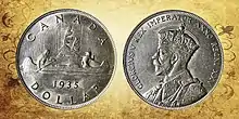 1935 Canadian voyageur dollar, commemorating King George V's Silver Jubilee
