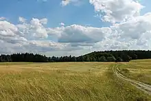 The Wöllmisse is a high plateau which rises east of the Saale Valley in the State of Thuringia, Germany. The densely wooded Wöllmisse borders the Roda Valley in the South, the Saale Valley to the West, the Gembdenbachtal in the North, and the town of Bürgel and the Gleistal Valley in the East. In Bürgel, it is connected via a saddle with the formation of Jenzig-Hufeisen-Alte Gleisberg.