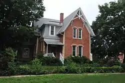The W.B. Swigert House is a historic residence located in Maquoketa, Iowa, United States. This is one of several Victorian houses in Maquoketa that are noteworthy for their quoined corners, a rare architectural feature in Iowa.[2] Built around 1896, the 2½-story brick house follows a rectangular plan with cross gable wings. It features a gambrel dormer, Stick Style trusses on the gable and gambrel, and a one-story polygonal bay window. The Swigert family was associated with a successful local newspaper called the Maquoketa Sentinel. This house was one of many houses built during Maquoketa's economic expansion in the late 19th century. It was listed on the National Register of Historic Places in 1991.[1]