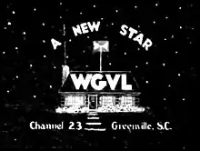 WGVL signed on August 1, 1953, under the ownership of the Greenville Television Company; the station's first network program was a baseball game from ABC, aired after opening ceremonies at its studios in Calhoun Towers.[2] WGVL's transmitter site and tower were the former WMRC-FM plant on Paris Mountain.[3] In its first months of operation, channel 23 was an affiliate of ABC, NBC and DuMont; the NBC affiliation would be lost when Greenville's first VHF station, WFBC-TV, signed on the air at the start of 1954.[4]