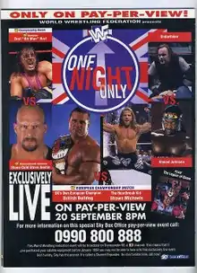 In 1997, the World Wrestling Federation (WWF, now WWE) scheduled a United Kingdom pay-per-view titled One Night Only. It took place on September 20, 1997, at the NEC Arena in Birmingham, England and was a one-off event.[1] It aired exclusively in Canada and the United Kingdom.