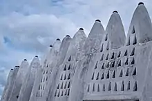 The building is made from traditional mud-brick Sudano-Sahelian architecture. The architectural style is a combination of forms and influences from the Moorish architecture and Sahel-Sudan according to some sources.[5] It is claimed that few historic earthen buildings of this nature remained in the Upper West region because of inadequate skilled artisans that are needed to maintain the building.[1][6][7][8]
