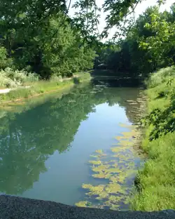 The canal is signed as being crossed by Interstate 64 at the milepost 32 crossing over Pigeon Creek.
