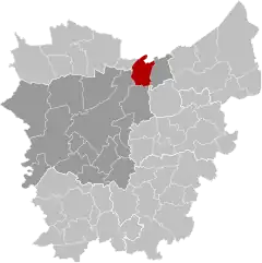 Wachtebeke (Dutch pronunciation: [ˈʋɑxtəbeːkə]) is a municipality located in the Belgian province of East Flanders. The municipality comprises the town of Wachtebeke proper, and a smaller town: Overslag.[2] In 2021, Wachtebeke had a total population of 7.769. The total area is 34.53 km2.[3]