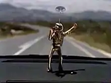 In 2001, German automobile manufacturer Audi aired television commercials in Europe to promote their new electronically controlled continuously variable (or stepless) "multitronic" transmission. The Frankfurt, Germany branch of advertising agency Saatchi & Saatchi, headquartered in New York City, produced the Audi commercials featuring an Elvis impersonator whose car had broken down.[1] The Elvis impersonator and his Wackel-Elvis were picked up by a friendly fellow driver - played by German actress Karina Krawczyk[2] - in an Audi equipped with the new transmission. The punch line of the commercials was that due to the lack of shifting motion while accelerating with the continuously variable transmission the Audi was equipped with, the Wackel-Elvis dashboard figure did not wobble as it had done in the Elvis impersonator's car before it broke down, causing disappointment for the impersonator.[3][4][5]