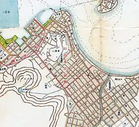 Map of pre-war Busan. The site of the Choryang waegwan is named the "Old Japanese Settlement" (旧日本居留地).