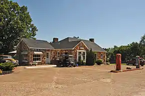 While the motel continued operating after the demise of Pauline Armstrong (2003) and her widower Harold (2008), the property slowly began to decline.[9] Connie Echols purchased the site from Harold's son James Armstrong in September 2009, operating the café building as a gift shop while painstakingly restoring each of the individual motel rooms with new plumbing, wiring, bedding and modern amenities in 2009 and 2010.[10] A recent, temporary frame structure which obscured much of the original fuel station building was removed in November 2009[11] as part of the effort to return the site to its original architectural appearance. A $12733 federal matching grant in 2012 was used to replace the roof on one building.[12]