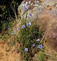 Wahlenbergia capensis is widespread in, and restricted to the Western Cape between Clanwilliam and Knysna in South Africa. It is found on the lower sandstone slopes and the sandy flats of this region.[8][9] Due to its annual life cycle it is also able to persist successfully on disturbed land, such as along roadsides and on cultivated land.[8] It is an introduced species occurring in the south-west of Western Australia where it is found between Kalbarri and Tambellup. The species was first collected in Western Australia in 1898.[3][2][10]