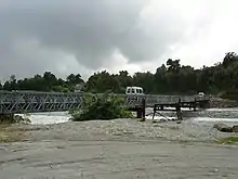 The Waiho River (traditionally the Waiau River[1]) is a river of the West Coast region of New Zealand's South Island. It is fed by the meltwater of the Franz Josef Glacier and skirts the main township of Franz Josef to its south, where its river bed is crossed by SH 6 on a long single-lane bridge. Due to changes in rainfall and snow melt, the river's water flow varies greatly. In a severe rain storm on 26 March 2019, the bridge was destroyed after 400 millimetres (16 in) of rain had fallen.[2] The bridge and one abutment was rebuilt, and the road link reopened after 18 days. The works cost NZ$6m.[3]