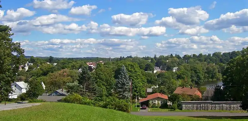 A view of Walden toward the northeast. Wallkill River is visible at right, with downtown in the center.