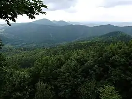 The Wałbrzyskie Mountains or Waldenburg Mountains (Polish: Góry Wałbrzyskie; German: Waldenburger Bergland), sometimes called the Wałbrzyskie Highlands or Waldenburg Highlands, is one of the three mountain ranges that form the western part of the Central Sudetes. The other ranges are the Owl Mountains and the Falcon Mountains.
