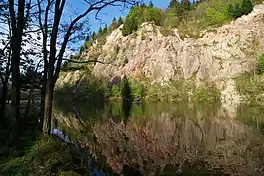 Rock faces of the abandoned Waldeneck Quarry and the Waldenecksee