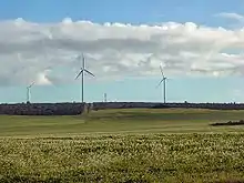 The Walkaway Wind Farm, 9 kilometres (5.6 mi) east of Walkaway, was completed in August 2005. It consists of 54 turbines, each producing 1.8 megawatts (2,400 hp), 80 metres (260 ft) high, and with 40-metre (130 ft)blade spans. Development consent has been given for an expansion of the project to up to 400MW.[5]