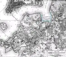 The bay eventually became the site of the Brooklyn Navy Yard. Parts of the bay were filled in to expand the yard. In the late 19th century, fill created a small island, as depicted in the Taylor Map of New York, and later fill joined it to the mainland.[9]