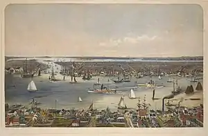 The area was the site where British prison ships moored during the American Revolutionary War from 1776 to 1783, were thousands of American prisoners of war were kept.[6] Around 12,000 American prisoners of war were said to have died in captivity by 1783, when all the remaining prisoners were freed. The majority died due to disease; some were buried on the eroding shore in shallow graves, or often simply thrown overboard. The Prison Ship Martyrs' Monument in nearby Fort Greene, which houses some of the prisoners' remains, was built to honor these casualties.[7][8]