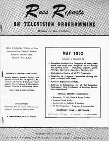 In 1949 Ross founded The Ross Reports, a monthly digest that compiled information on casting directors, agents, managers, production companies, and upcoming film and television productions for the NYC theater and television community.[8][9] Ross was the publisher and editor of The Ross Reports until 1954.