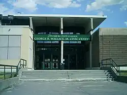 The George R. Wallace Jr. Civic Center, more commonly known as the Civic Center, is a 1,000-seat multi-purpose arena in Fitchburg, Massachusetts and has an end-stage concert capacity of 3,200. It hosts various local concerts and sporting events for the area. First opened in 1970, the Wallace Civic Center consists of the Gaetz Arena, the Landry Arena, a planetarium, and several multi-use banquet rooms.