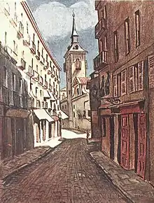After the construction of the Medieval Walls, the city continued to grow eastward, with the population increasing from 5,000 to 12,000 inhabitants from the mid-15th to early 16th century. The suburbs, or arrabales, took their names from convents, hermitages and churches constructed outside the Muslim Walls in the 12th century.[12] The first of these, known from 1126, was the Arrabal of Saint Martin corresponding to the Convent of San Martín, followed by that of San Ginés by the Church of San Ginés de Arlés.[13]