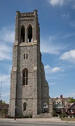 Walnut Hills United Presbyterian Church is a historic church tower in the Walnut Hills neighborhood of Cincinnati, Ohio, United States. The last remnant of a landmark church building, it was designed by a leading Cincinnati architect and built in the 1880s. Although named a historic site a century after its construction, the building was mostly destroyed after extensive neglect caused restoration to become prohibitively expensive.