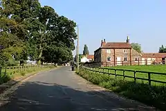 There are only a few houses, but The Bridge Inn, a former was a coaching inn on the Great North Road still exists. The inn is a converted farmhouse on the A168 road, and is a grade II listed structure.[8][9] One of the rooms is known as the "Byron Room", after the woodcarving and plaster were removed to the Bridge Inn from Halnaby Hall in the 1950s. Halnaby Hall was where Byron spent his honeymoon, or as he described it, his "treaclemoon".[10] The nearest railway station was Allerton/Hopperton (on what is now the Harrogate line), however since this closed in 1962, the nearest open station is Cattal on the same line.[11][12][13]