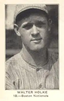 Walter Henry Holke (December 25, 1892 – October 12, 1954) was an American first baseman in Major League Baseball. He played for the New York Giants, Boston Braves, Philadelphia Phillies, and Cincinnati Reds. Holke holds the record for the most put-outs by an infielder in a game, with 46 during a 26-inning game between the Braves and the Brooklyn Dodgers on May 1, 1920.[1]