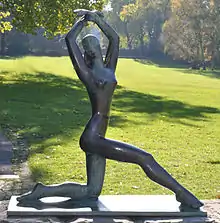 Lemcke produced numerous pieces that depicted eagles, the national symbol used by the Nazi government. Examples of these works include two large sculptures that featured at the newly built Ministry of Aviation office in Berlin.[1] These eagles added to the Nazi symbolism of the building, themselves gripping swastikas and stood atop decorative columns.[2] At the end of World War II the sculptures were removed from what is now the Detlev-Rohwedder-Haus.