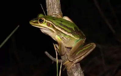 - ↑ White, A.W. and Pyke, G.H. 1996. Distribution and conservation status of the Green and Golden Bell Frog Litoria aurea. Australian Zoologist 30, 177-189.