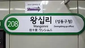 - ↑ "왕십리역" (in Korean). 철도역 정보. Retrieved 2019-07-19.
