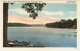 The lake has been a popular summer vacation destination for boaters and bathers. Artists flocked to the summer cottages along the shores. In the early twentieth century, a trolley line connected the towns of Coventry and Willimantic, and Wangumbaug Lake became known as "Willimantic's summer resort." A pavilion known as the Lakeside Casino was a popular dance hall.[3][4] Wangumbaug Lake is currently the home of the UConn Huskies rowing team, which shares its boathouse with the Edwin O. Smith High School crew team from nearby Mansfield.