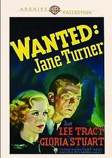 Wanted! Jane Turner is a 1936 American crime drama film directed by Edward Killy from a screenplay by Edmund L. Hartmann and John Twist, based on Twist's story. Produced by RKO Radio Pictures, it was premiered in New York City on November 27, 1936, with a national release the following week on December 4. The film stars Lee Tracy and Gloria Stuart, with an extensive supporting cast.