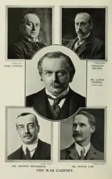 In December 1916 it was proposed that Prime Minister H. H. Asquith should delegate decision-making to a small, three-man committee chaired by the Secretary of State for War, David Lloyd George. Asquith initially agreed (provided the committee reported to him and he retained the right to attend if he chose) before changing his mind after being infuriated by a news story[3] in The Times which portrayed the proposed change as a defeat for him. The political crisis grew from this point until Asquith was forced to resign as Prime Minister; he was succeeded by Lloyd George who thereupon formed a small war cabinet. The original members of the war cabinet were:[4]