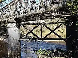The first bridge at Warden for the railway between Newcastle upon Tyne and Carlisle was designed by John Blackmore and originally built of timber; it burnt down in 1848 and cast-iron arches were placed on the original piers.[1] A second bridge on a different alignment was completed in 1904 and remains in use as part of the Tyne Valley line.[1]