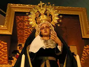 The church is especially known for its statue of the Mother of Sorrows, sculpted by one of the renowned procession-sculptors of Seville, Miguel Bejarano Moreno. It is because of this very Andalusian image that some Spaniards living in the Netherlands use Warfhuizen as a place of (unofficial) pilgrimage. In the last years their habit spread to all Catholics in the region and even beyond: Warfhuizen became the northernmost Marian sanctuary of continental Europe.