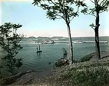 Security conditions in eastern Shandong were already deteriorating before the arrival of Zhang, as Liu's garrison at Longkou and Huangxian mutinied in late January 1929.[3] The local commanders, namely Liu Kai-tai, Li Hsi-tung, Sze Tien-pin, and Kao Peng-chi had reportedly planned to overthrow Liu Zhennian, prompting him to dismiss them, whereupon they revolted[26][27] and renounced their allegiance to the Nanjing government. Their 3,000 forces, consisting of ex-Zhili and Shandong troops[9] went on to completely loot Longkou, Huangxian, and Dengzhou. Foreigners who had lived in these towns fled onto two Japanese warships that harbored at the coast by chance.[28][22] The violence was only quelled when an additional Imperial Japanese Navy detachment arrived to protect Japanese citizens in the area,[3][28] soon followed by 20,000 troops loyal to Liu.[7] Instead of resisting, the mutineers fled into areas held by the Red Spear insurgents.[3] Allying themselves with the peasant rebels, the mutineers were reportedly preparing an attack on Longkou by early February. The morale of Liu's remaining forces in the area was extremely low.[26]