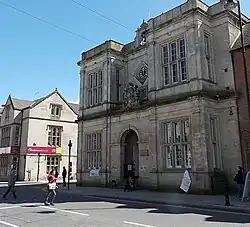 The 10th Corps, Wiltshire Rifle Volunteer Corps, part of the Volunteer Force, was raised at the town hall in December 1859 and the armoury was initially based in the basement of the building.[5] A large crowd gathered at the town hall when, in November 1876, the youngest son of Queen Victoria, Prince Leopold, who was interested in freemasonry, attended the annual meeting of the Provincial Grand Lodge of Wiltshire in the building.[6] Prince Leopold had recently taken up residence seven miles away at Boyton Manor.[7] Some 100 panes of glass were broken and the porch suffered structural damage in a bomb explosion on 14 January 1885; two men, who claimed to be pranksters, were given prison sentences for their role in the incident.[8][9][10]