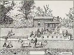 In 1852, John W. Erwin, the resident engineer of the Miami and Erie Canal, investigated repairs to the canal by direction of the General Assembly, that body having requested an estimate of the cost of repairs and an opinion on whether the canal should be abandoned.[2] He submitted a report to the State Board of Public Works which estimated $31,613, would be needed to repair the Warren County Canal. Of that sum, $16,896 was needed just for dredging. Because the canal had been little used, the State declined to repair it. In the General Assembly, Representative Durbin Ward of Lebanon introduced legislation to abandon the "Lebanon Ditch." In 1854, the state sold the remnants for $40,000 to John W. Corwin and R.H. Henderson.