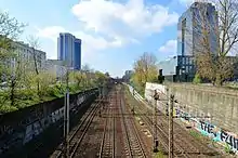 Warsaw cross-city line (Polish: Linia Średnicowa w Warszawie) is a 7 km (4.3 mi) railway line crossing Central Warsaw in the east–west direction. Opened in 1933 and electrified in 1936, it initially had two tracks, with an additional two added in 1967.[1] The central part of the line is in a tunnel, which is 2,226 m (7,303 ft 2 in) long.[2] It then crosses the Vistula by the Średnicowy railway bridge 470.15 m (1,542 ft 6 in)[3] long located between Poniatowski Bridge and Świętokrzyski Bridge.
