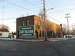 Warsaw Cut Glass Company is a historic factory building located at Warsaw, Kosciusko County, Indiana making cut glass. It is a two-story, plus basement, industrial building constructed of paving brick. The building measures 100 feet by 25 feet. Two small additions were constructed in 1912 and the building features an original handpainted sign added in 1915. The company remains in operation.[2]
