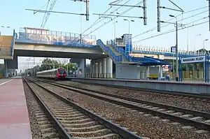 Warszawa Płudy railway station is a railway station in the Białołęka district of Warsaw, Poland. As of 2012, the 2 platform, 2 track station is used by Koleje Mazowieckie, who run the KM9 services from Warszawa Wola or Warszawa Zachodnia through the north of the Masovian Voivodeship to Działdowo, in the Warmian-Masurian Voivodeship via Legionowo, Nasielsk, Modlin, Ciechanów and Mława, at all of which some trains terminate, and by Szybka Kolej Miejska, who run S9 services to Wieliszew, with some trains terminating at Legionowo or Legionowo Piaski.