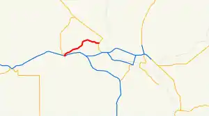 SR 224 begins at an interchange with I-82 in southern Benton City. After only 0.05 mi (80 m), SR 224 intersects SR 225 at a roundabout and turns to the east as Kennedy Road. After passing a park and ride lot on the south side of the highway, the road turns back to the north off of Kennedy road, paralleling the Yakima River, slowly turning northeast through a rural area of Benton County. After passing through farmland SR 224 enters West Richland and becomes Van Giesen Street, the main east–west thoroughfare of the city.[2] Exiting the town, the highway passes over the Yakima River and enters Richland, passing through a rural area on the south side of Richland Airport. At the southeast corner of the airport, SR 224 crosses over a single track belonging to the Port of Benton and managed by Tri-City Railroad and terminates at an intersection with SR 240 (the Richland Bypass Highway).[3] Van Giesen Street continues east from the terminus of SR 224 for another 1.7 miles (2.7 km), intersecting SR 240 Business near the western shore of the Columbia River.[4]