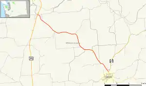 SR 271 begins at a y-interchange with SR 27 in north Oakesdale, traveling northwest past the Oakesdale Cemetery. The highway traverses rolling wheat fields through rural Whitman County, crossing over McCoy and Pine Creeks. The highway parallels a single track, to the west of the highway, belonging to the Washington and Idaho Railway,[2] crossing over the line roughly half way to Rosalia. The rail line continues to parallel the highway after crossing it, just on the opposite side of the highway. SR 271 terminates at an interchange with US 195 southeast of Rosalia, however the roadway continues into the town as a county-maintained road.[3][4] The entirety of the route has been named as part of the Palouse Scenic Byway.[5]