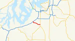 The legislative definition of SR 704 begins at I-5 near Lakewood on the northwest side of Joint Base Lewis–McChord, a U.S. military installation.[2] The signed portion of the highway begins at milepost 5.92, an intersection with Spanaway Loop Road south of Spanaway Lake.[3] The highway travels east for 0.63 miles (1.01 km) between Joint Base Lewis–McChord and a residential neighborhood to its eastern terminus, an intersection with SR 7 at 176th Street East. The signed section of SR 704 is wholly contained within the unincorporated community of Spanaway in southern Pierce County.[4][5]
