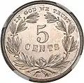 1866 reverse, "5 Cents" surrounded by wreath