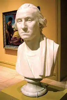 Plaster copy of bust of Washington by Houdon (1786); Houdon's work was adapted for Flanagan's profile image.